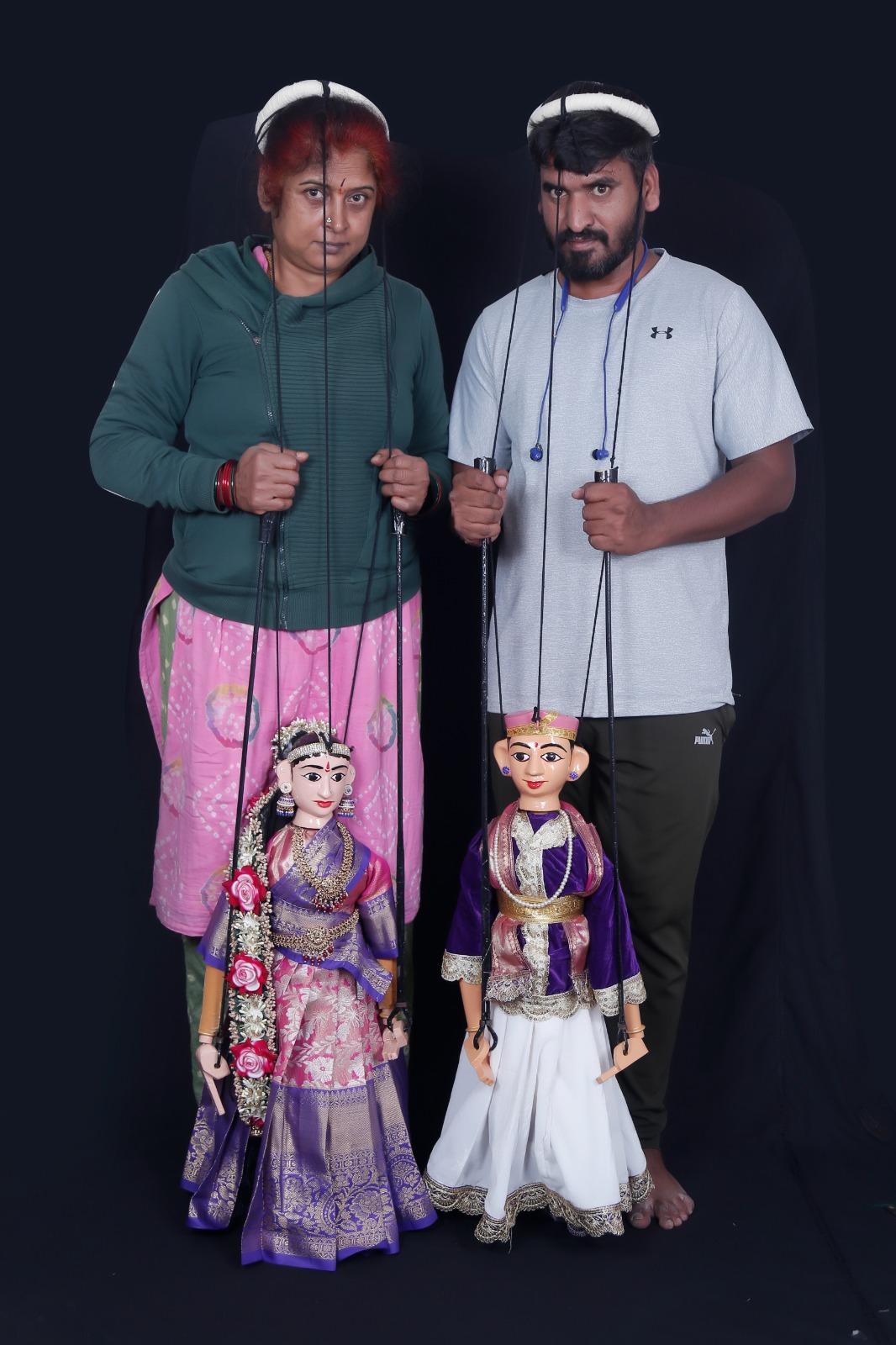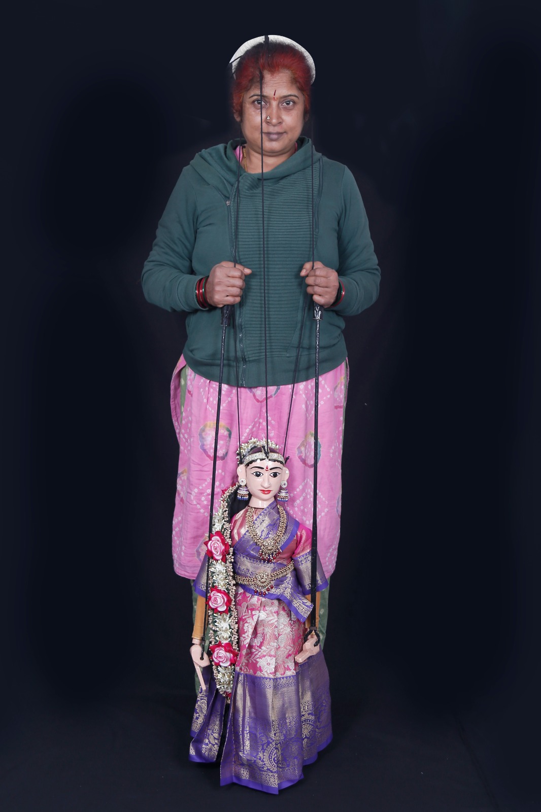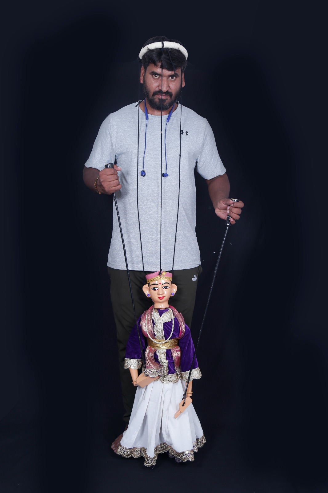Karnataka style traditional Sutra Salaki Gombe- String and Rod Puppet crafted for Doll's theatre Kolkata November 2025 by Sphoorthi Youth Brigade leader Mr Mahesha B R & Padmini Rangarajan