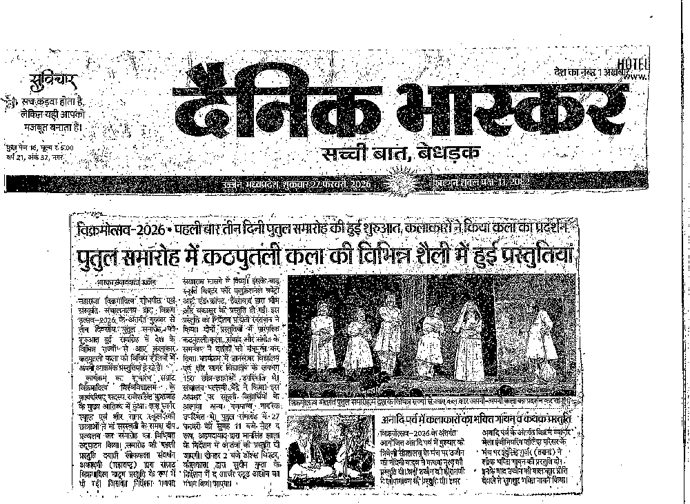 - Sphoorthi's participation in Dhaatu International puppet festival coverage by Vijayavani Kannada daily newspaper dated Jan5, 2018