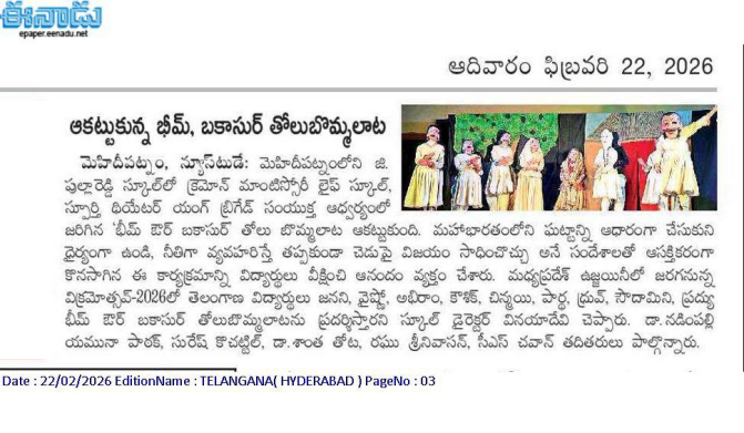 - Talking puppet making workshop coverage in Sakshi Telugu Daily newspaper, Hyderabad district edition dated -27-5-2018.