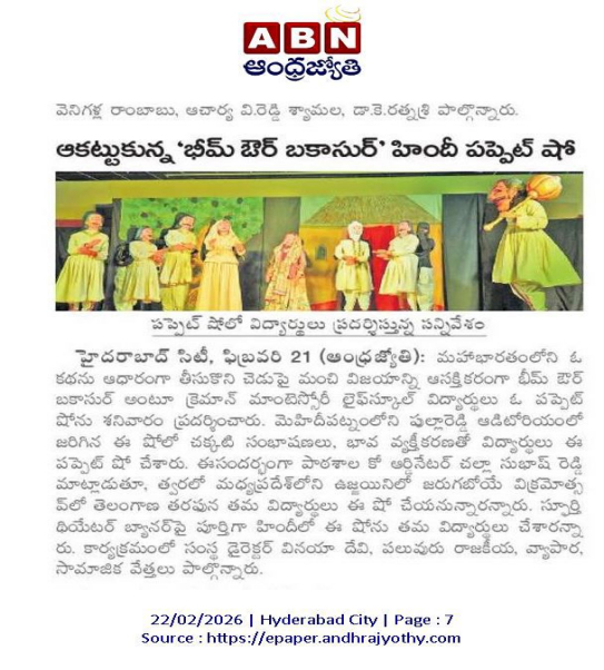 - Touching a Chord with Puppets" in 'Sunday Scrape' Suppliment Edition of Telangana Today English Daily dated Jan 5, 2020